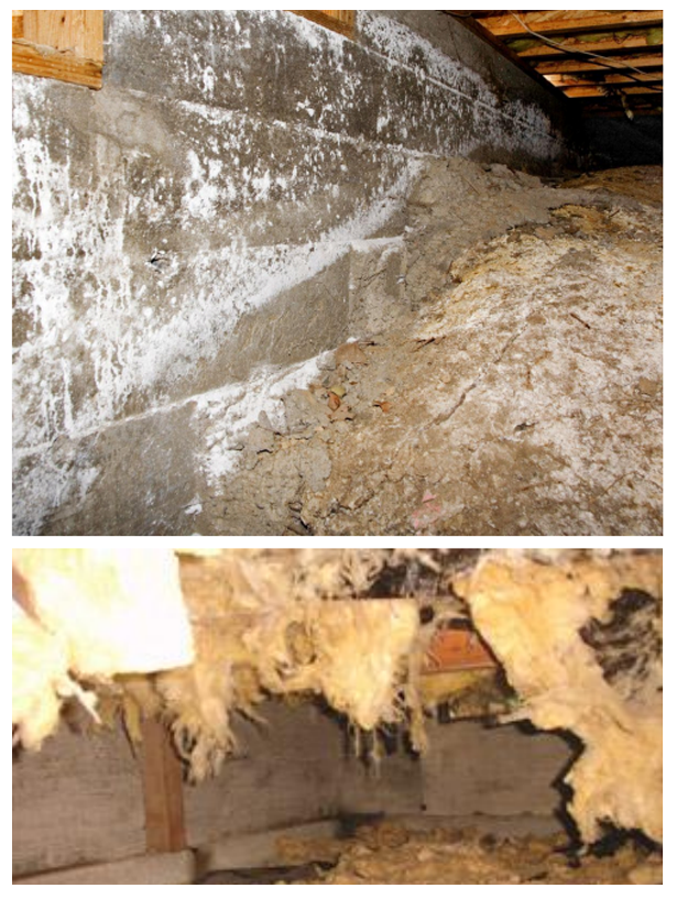 - Damp, sagging, or falling insulation